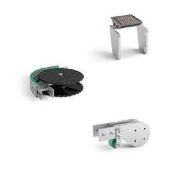Le catene sono disponibili in DIFFERENTI DIMENSIONI E MATERIALI. Resina acetalica per le applicazioni più comuni oppure in inox (82.5, 114.3 e 190.5) per il settore alimentare. La più piccola catena della famiglia di 63mm è particolarmente adatta al settore farmaceutico essendo realizzata in PET. A richiesta possono essere previsti inserti antiscivolo per trasporti inclinati fino a 25°, elementi gommati per elevatori e discensori, catene per trasporti ad accumolo e trasporti verticali.