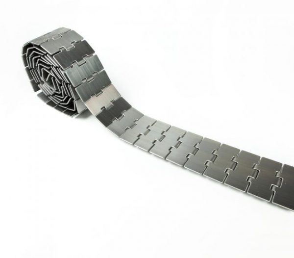 Nel 1938 Rexnord introdusse la prima catena a tapparella in metallo con piastra superiore a cerniere integrate. Oggi le linee di prodotti Rexnord e MCC di catene a tapparelle in acciaio offrono numerosi materiali, tipi e gradi, consentendo una soluzione pe rle molte applicazioni. Le catene a tapparelle in acciaio sono ideali per la movimentazione di bottiglie di vetro, contenitori in PET, barili, cassette e molti altri prodotti.