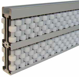 Rexnord produce profili guida prodotto, guide a rullini morsetti porta guide, supporti laterali e morsetti di collegamento in plastica e acciaio inox.